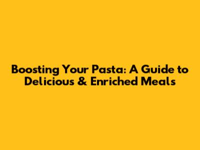 Boosting Your Pasta: A Guide To Delicious & Enriched Meals