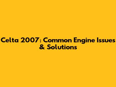 Celta 2007: Common Engine Issues & Solutions