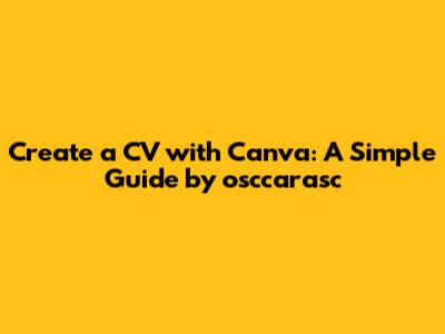 Creating a standout CV is crucial in today's competitive job market. osccarasc brings you a comprehensive guide on how to leverage Canva, a user-friendly design platform, to craft a professional and visually appealing CV. Whether you're a student, a seasoned professional, or somewhere in between, this guide will walk you through the steps to create a CV that not only highlights your skills and experience but also captures the attention of potential employers. Canva's intuitive interface and vast library of templates make it an excellent choice for anyone looking to create a CV without needing advanced design skills. So, let's dive in and discover how you can transform your career prospects with a well-designed CV using Canva!