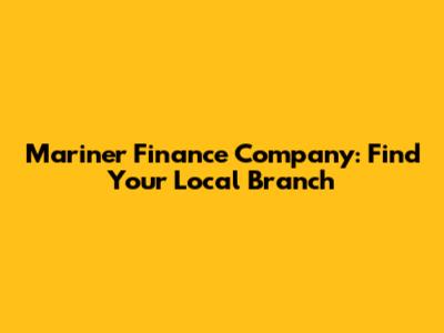 Mariner Finance Company: Find Your Local Branch