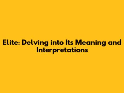 The Roots of "Elite": A Journey Through Time