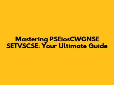 Hey guys! Today, we're diving deep into a topic that might sound a bit intimidating at first glance: PSEiosCWGNSE SETVSCSE. But don't worry, by the end of this article, you'll be a total pro. We're going to break down everything you need to know, making it super easy to understand and apply. So, grab a coffee, get comfy, and let's get started on mastering PSEiosCWGNSE SETVSCSE!