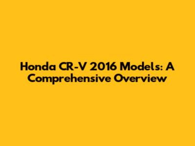 Honda CR-V 2016 Models: A Comprehensive Overview