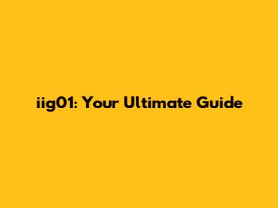 iig01: Your Ultimate Guide