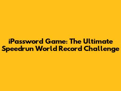 Key Strategies for Breaking the iPassword Game Speedrun Record