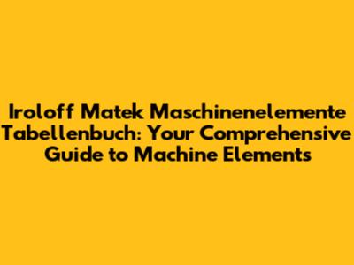 Ultimately, the Iroloff Matek Maschinenelemente Tabellenbuch stands as a cornerstone resource for anyone engaged in the intricate world of machine elements. Its comprehensive nature, coupled with its user-friendly design, makes it an indispensable tool for both seasoned engineers and budding students. By providing a wealth of meticulously compiled data, practical guidance, and clear explanations, this tabellenbuch empowers users to navigate the complexities of machine design with confidence and precision. The ability to quickly access accurate information, whether it's material properties, fastener specifications, or bearing characteristics, translates directly into enhanced efficiency, reduced errors, and ultimately, the creation of safer and more reliable machines and systems. The Iroloff Matek Maschinenelemente Tabellenbuch is not just a collection of tables and charts; it's a gateway to a deeper understanding of machine elements and a pathway to engineering excellence. Its enduring value lies in its ability to bridge the gap between theoretical knowledge and practical application, making it an invaluable asset for anyone striving to master the art and science of machine design.