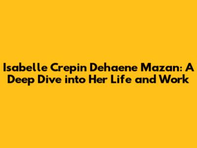 Hey guys! Let's dive deep into the world of Isabelle Crepin Dehaene Mazan. This article is going to be your go-to source to understand everything about this amazing person. We'll explore her life, her work, and the impact she has made. So, buckle up, because it’s going to be a fun and informative ride! We will cover her background, her career, and the contributions that have defined her. This article aims to provide a comprehensive overview, ensuring that you walk away with a solid understanding of who she is and what she has accomplished. Ready? Let's get started!