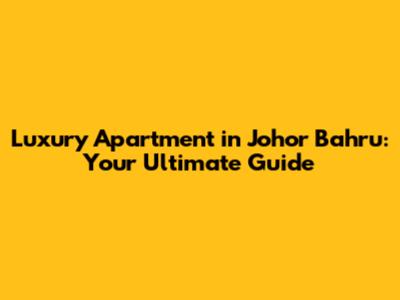 Luxury Apartment In Johor Bahru: Your Ultimate Guide
