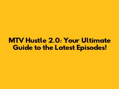 Where to Watch MTV Hustle 2.0 Full Episodes