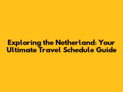 Tips for Optimizing Your Netherland Schedule