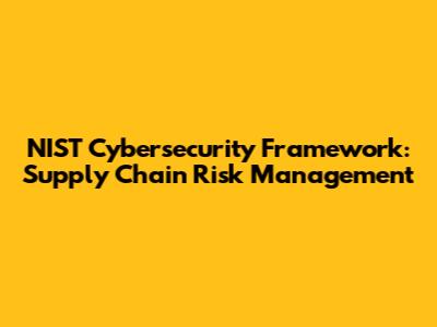 NIST Cybersecurity: Supply Chain Risk Management