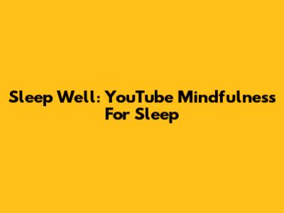 Sleep Well: YouTube Mindfulness For Sleep