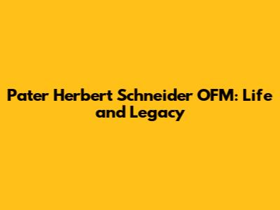 Pater Herbert Schneider OFM: Life And Legacy