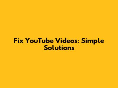 Fix YouTube Videos: Simple Solutions