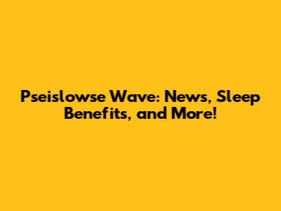 Pseislowse Wave: News, Sleep Benefits, And More!
