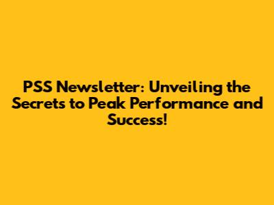 PSS Newsletter: Unveiling the Secrets to Peak Performance and Success!