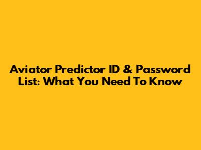 Aviator Predictor ID & Password List: What You Need To Know