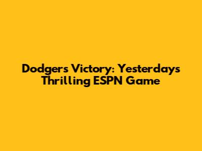 Dodgers' Victory: Yesterday's Thrilling ESPN Game