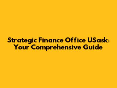 Strategic Finance Office USask: Your Guide