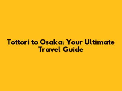 Why Travel from Tottori to Osaka?