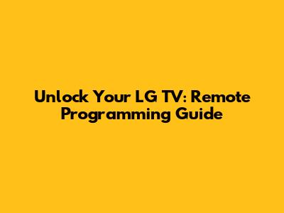 Unlock Your LG TV: Remote Programming Guide