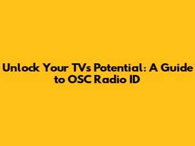 Hey guys! Ever wondered what that OSC Radio ID thing is all about on your TV? Or maybe you're just trying to figure out how to make your viewing experience even better? Well, you've come to the right place! This guide will break down everything you need to know about OSC Radio IDs, how they work, and why they're important. We'll also dive into some troubleshooting tips and tricks to keep your entertainment system running smoothly. So, grab your popcorn, settle in, and let's get started!