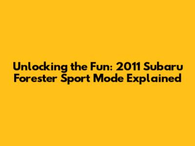 Unlocking The Fun: 2011 Subaru Forester Sport Mode Explained