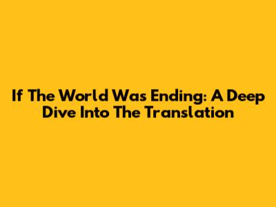 If The World Was Ending: A Deep Dive Into The Translation