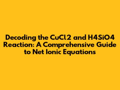 Hey there, chemistry enthusiasts! Ever wondered how to decipher the dance of ions when copper(II) chloride (CuCl2) and silicic acid (H4SiO4) meet? Let's dive deep into the fascinating world of net ionic equations, breaking down the reaction step by step, and making it crystal clear. This guide will help you understand the core principles, reactions, and the ultimate net ionic equation for this chemical interaction. Buckle up, because we're about to embark on a journey through the molecular world! We'll start by exploring the basics of chemical equations, then we'll move into the specifics of CuCl2 and H4SiO4, and finally, we'll nail down the net ionic equation.