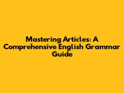 Mastering Articles: A Comprehensive English Grammar Guide
